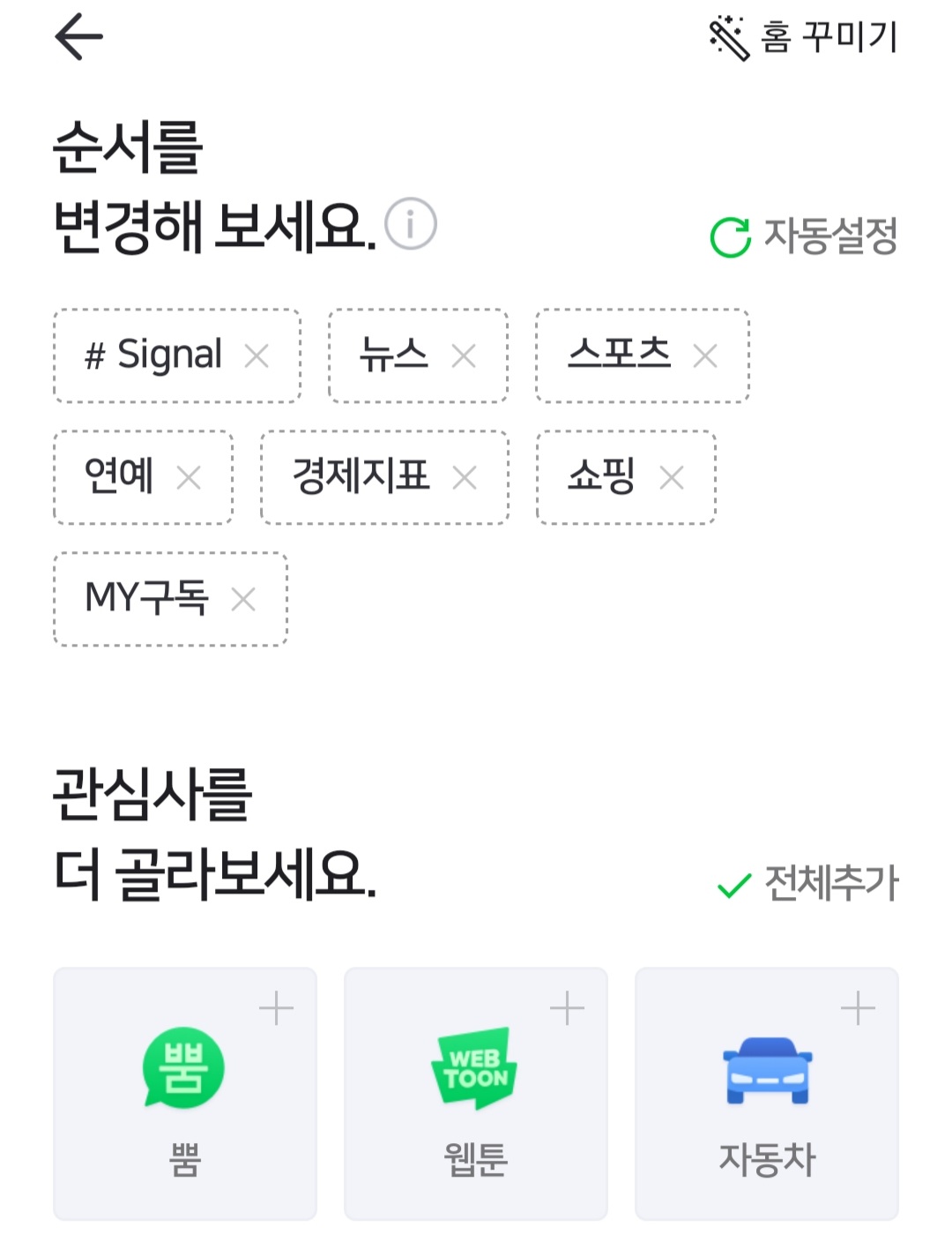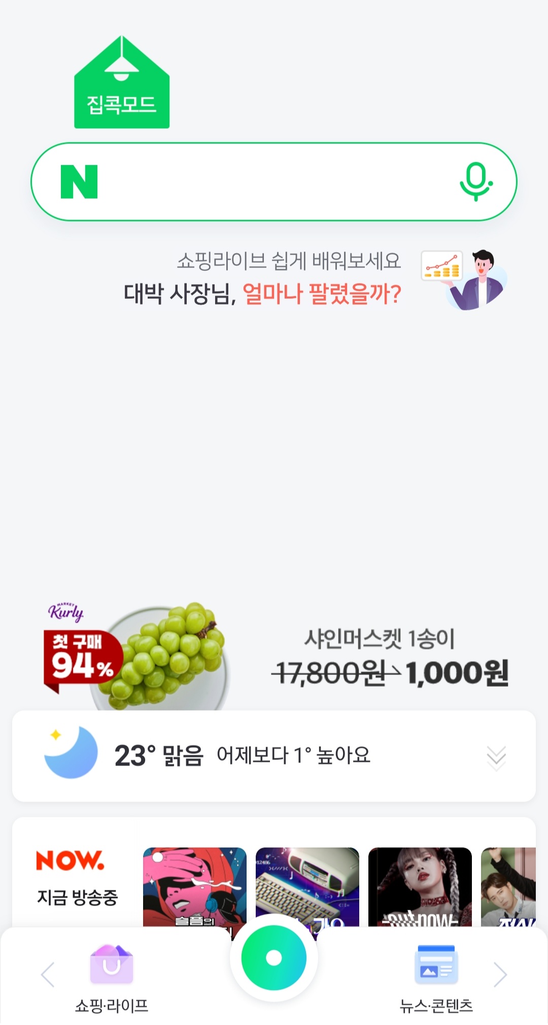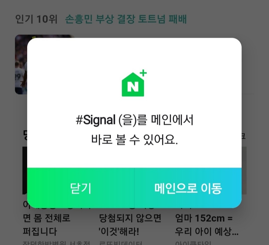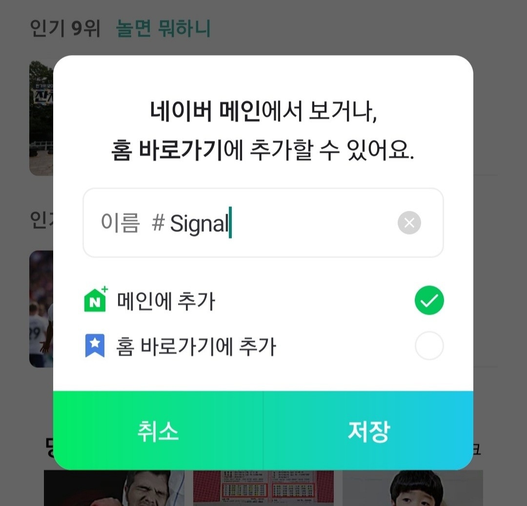 이걸 누르시면 네이버앱 먼용이라는 글자와 함께 네이버메인에 추가할지 묻는 글이 나오네요?