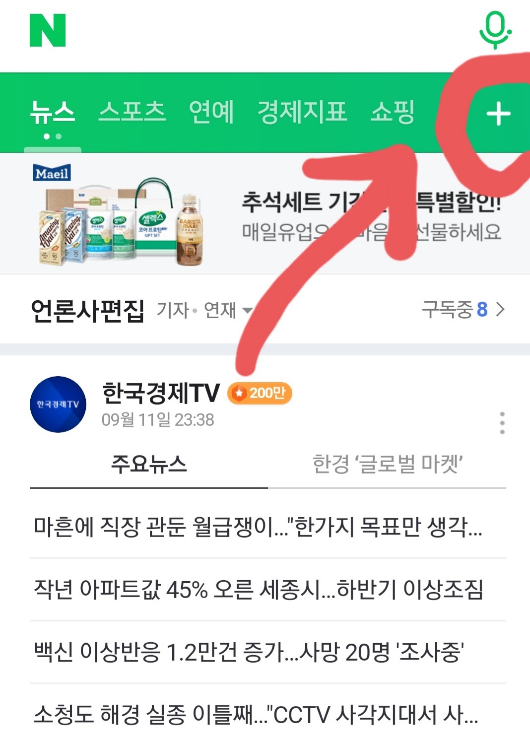 저장을 다했다고 생각했고 네이버앱을 다시켜봤습니다.
