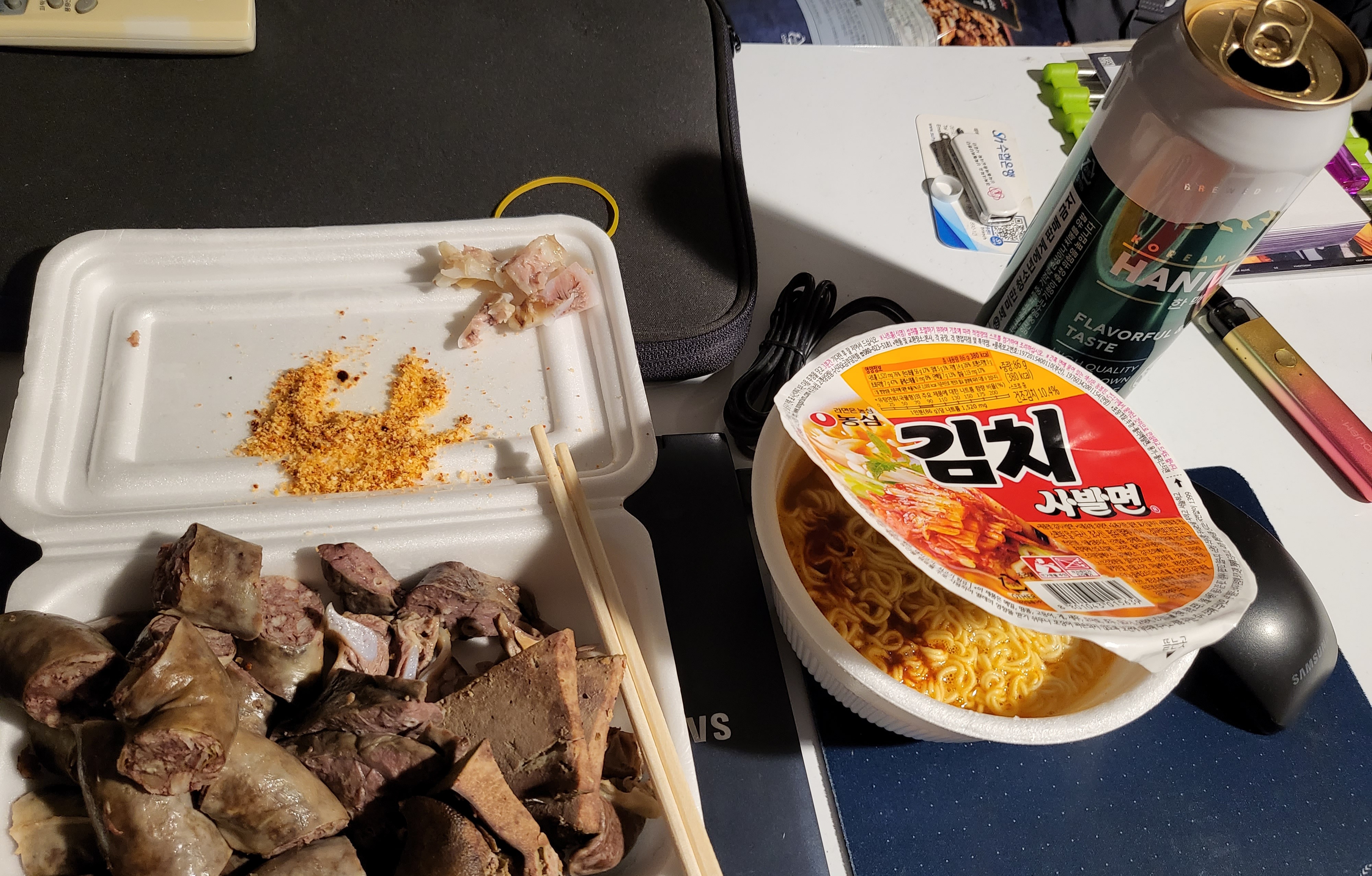 집에 도착해서 라면과 한맥을 셋팅을 하고