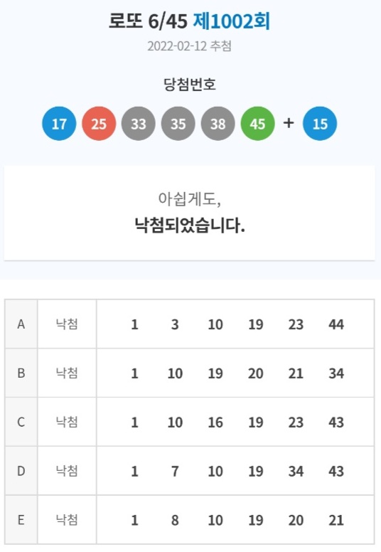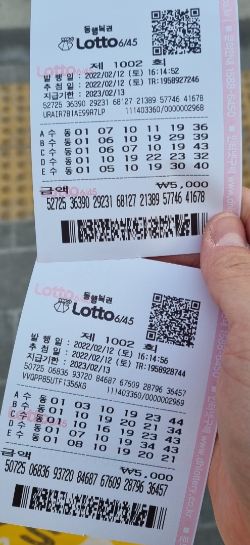 | [로또] 1001회로또당첨번호조회/함께가는동행복권 당첨번호(feat. WOW🥶) (10) | 2022.02.05 |