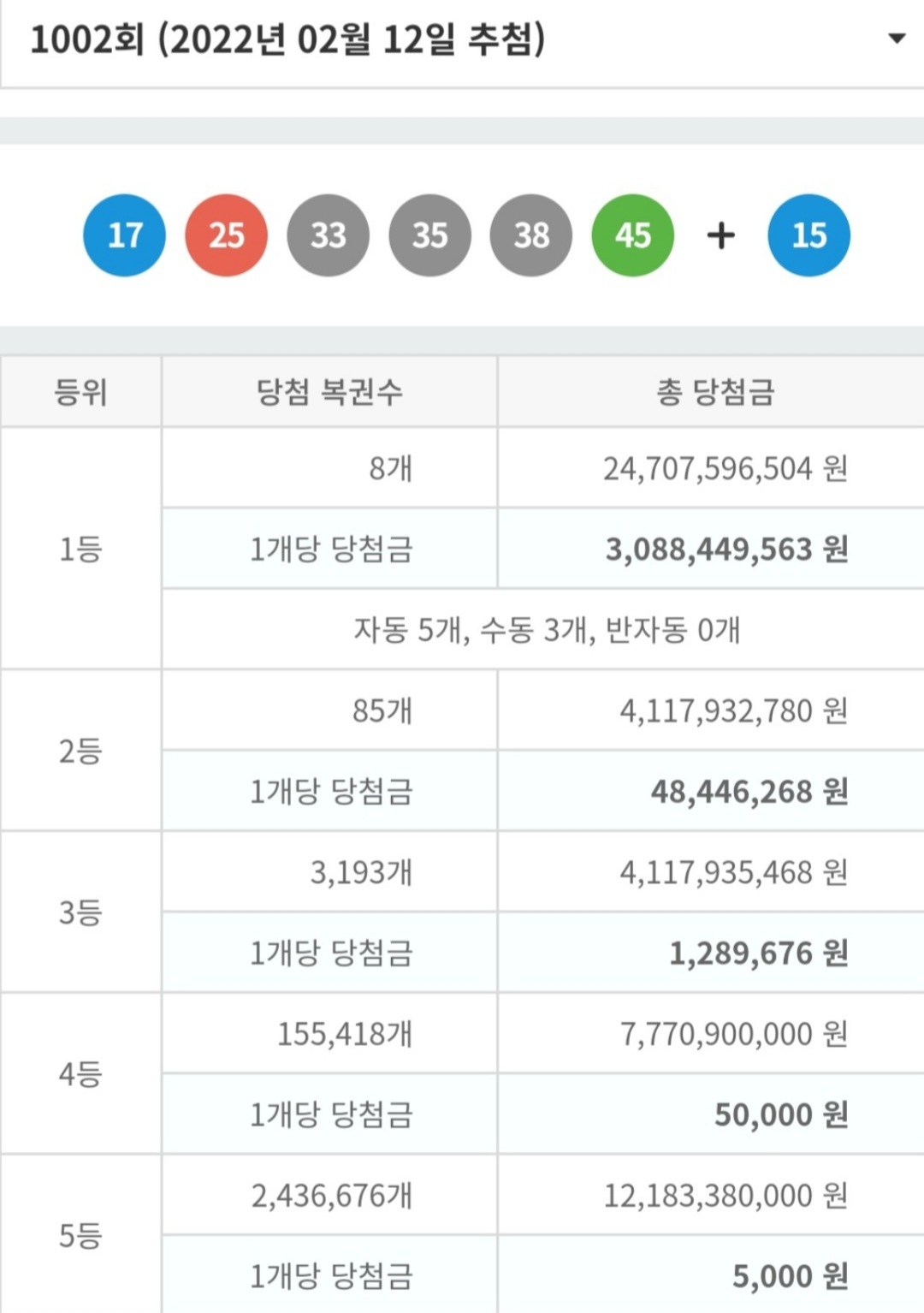 2022년 2월12일 로또 1002회 였습니다.