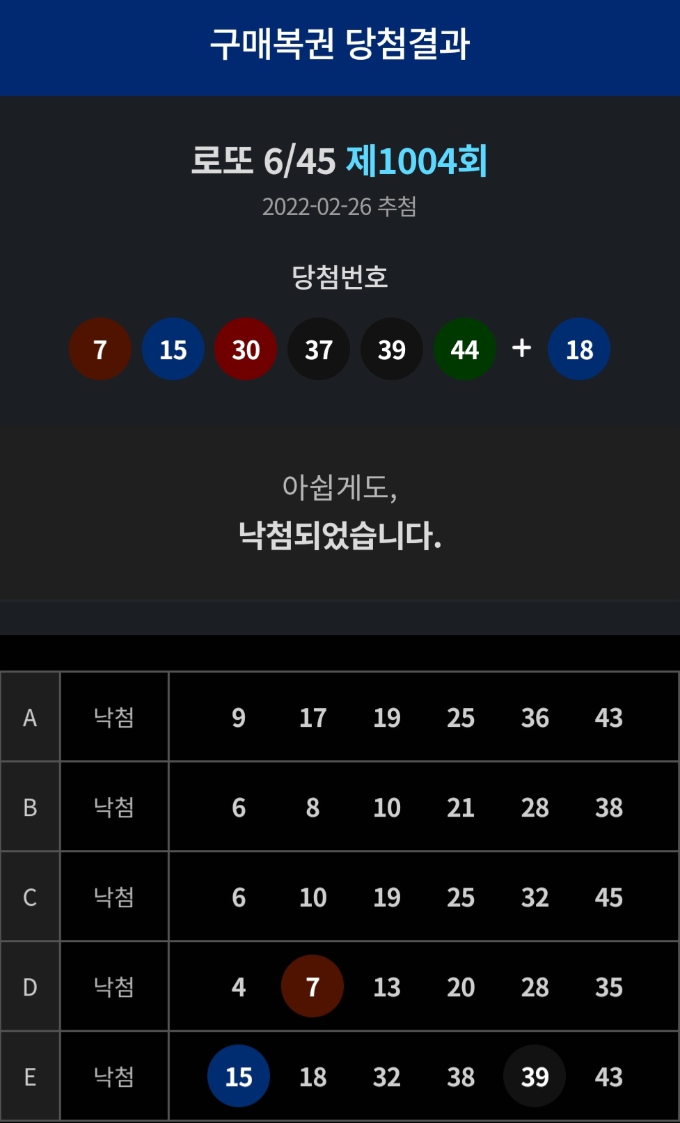 2월26일, 1004회로또 당첨 많이되셨나요?
