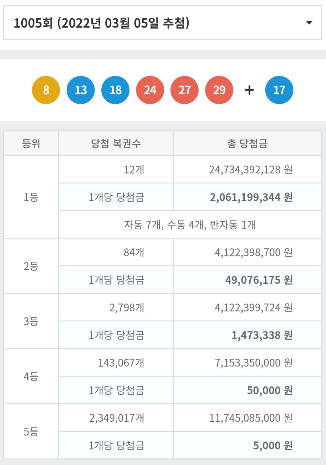 3월5일, 1005회차 로또 당첨번호 알아보겠습니다!!