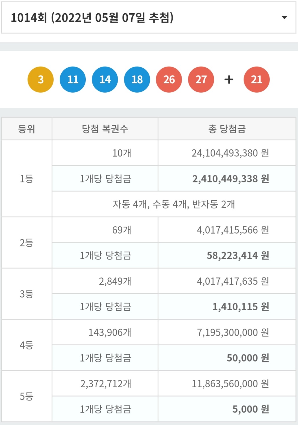 5월7일 로또 1014회차 당첨번호/당첨지역 확인할게요!!