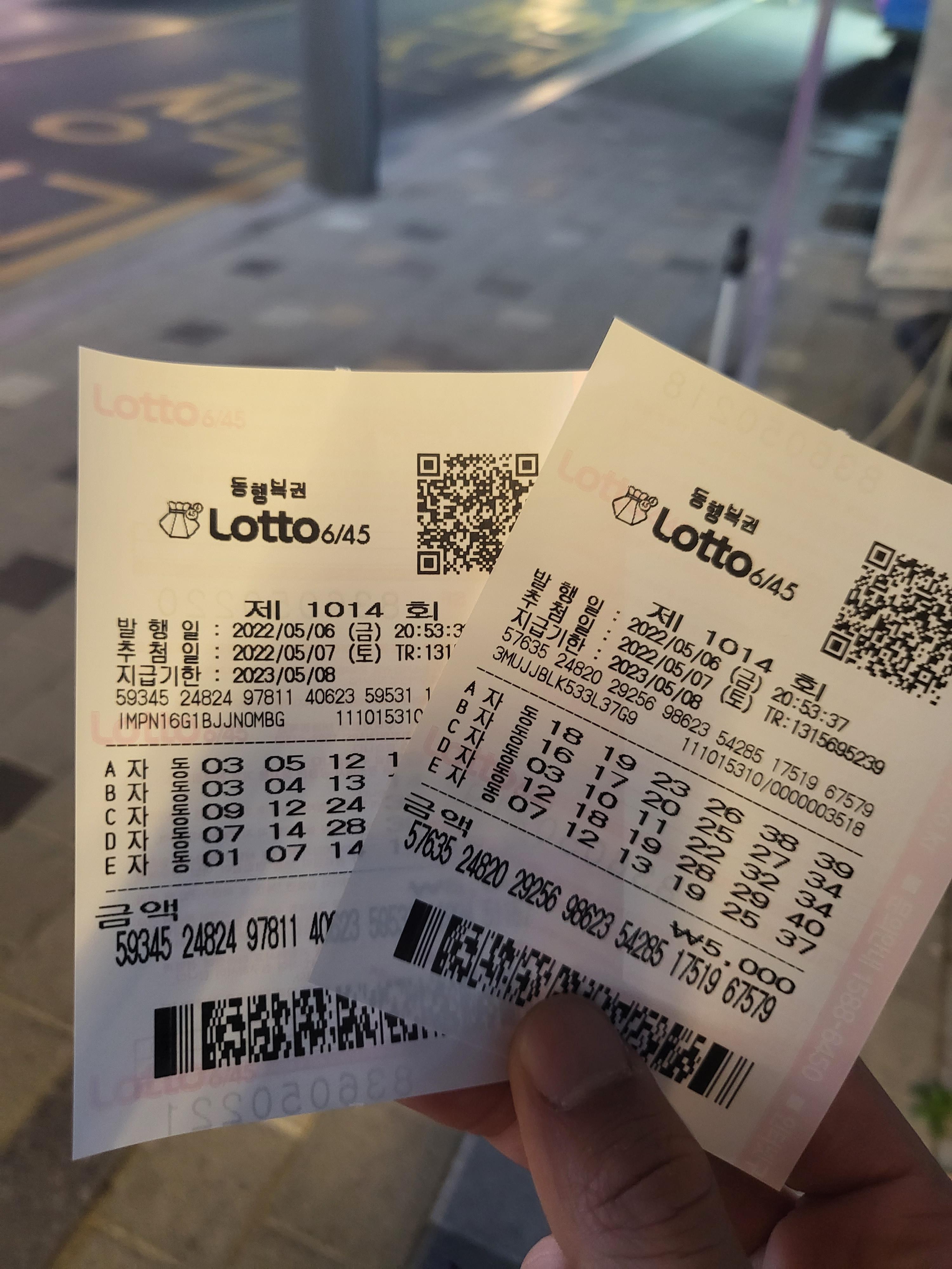 5월7일 로또 1014회차 당첨번호/당첨지역 확인할게요!!