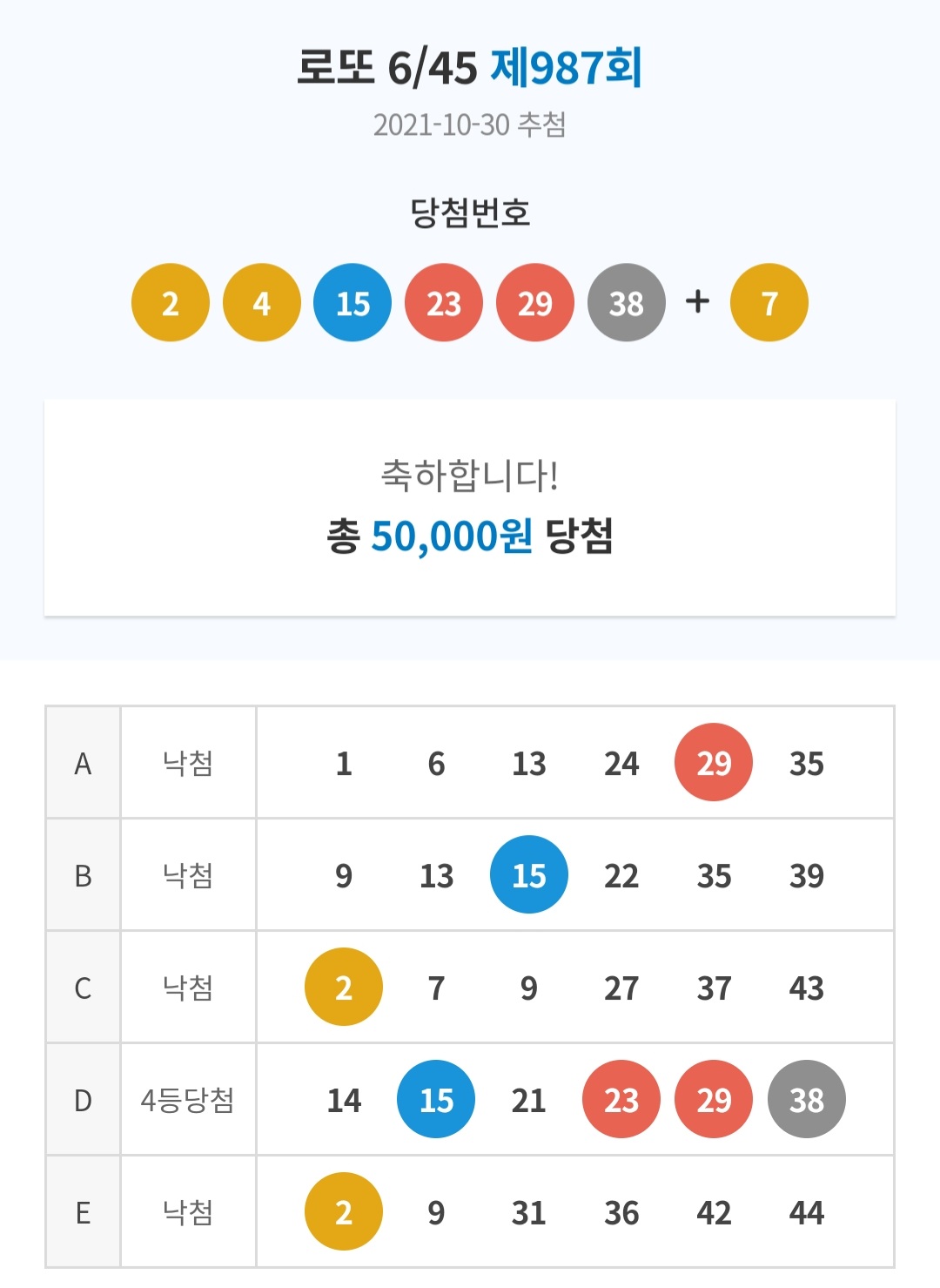 하지만 987회차는 달랐어요 숫자2개만 더있었어도 1,2등 이였는데 계속 보게 되네요