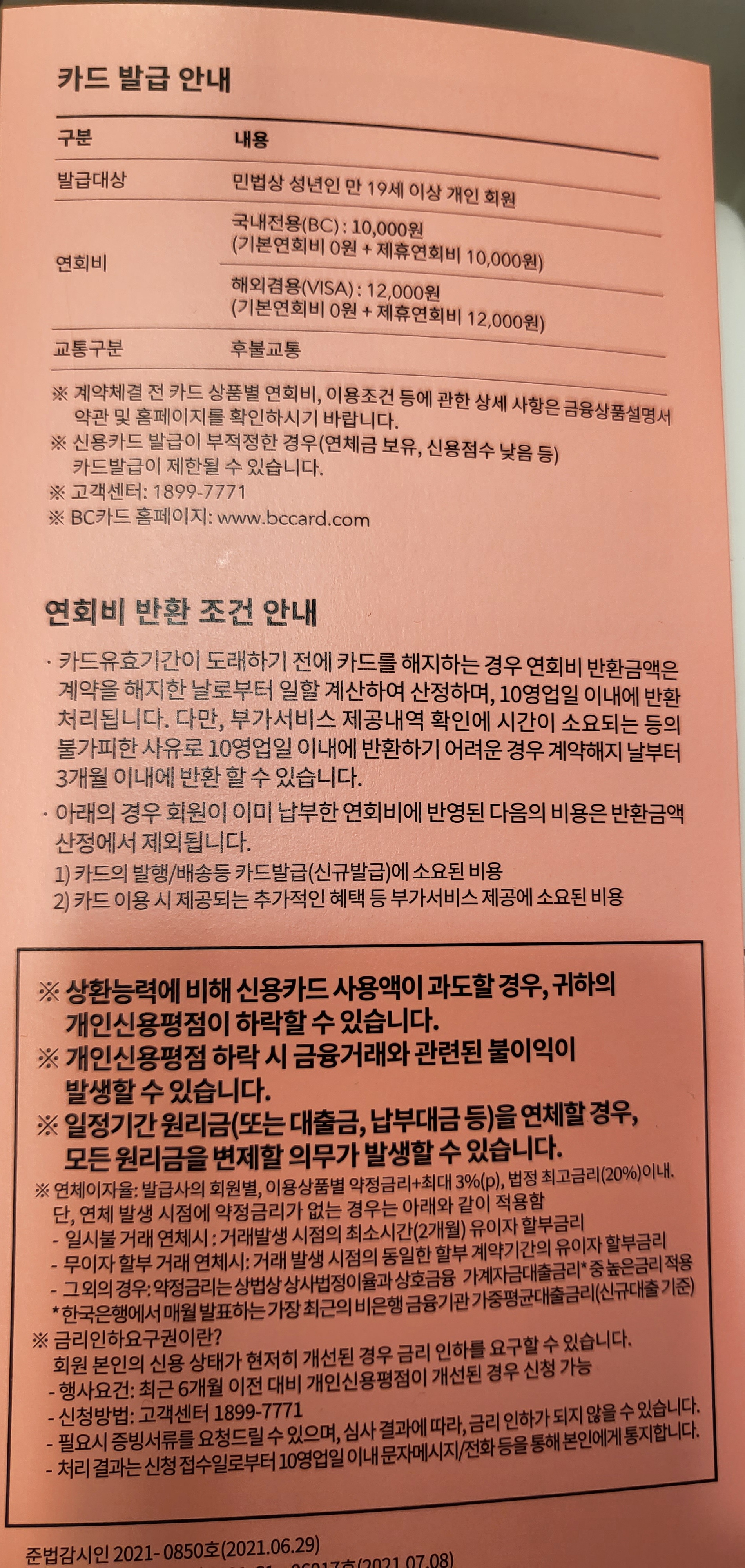 로제의 매력에 빠져 생각도 하지않고 발급받은 BC카드,
