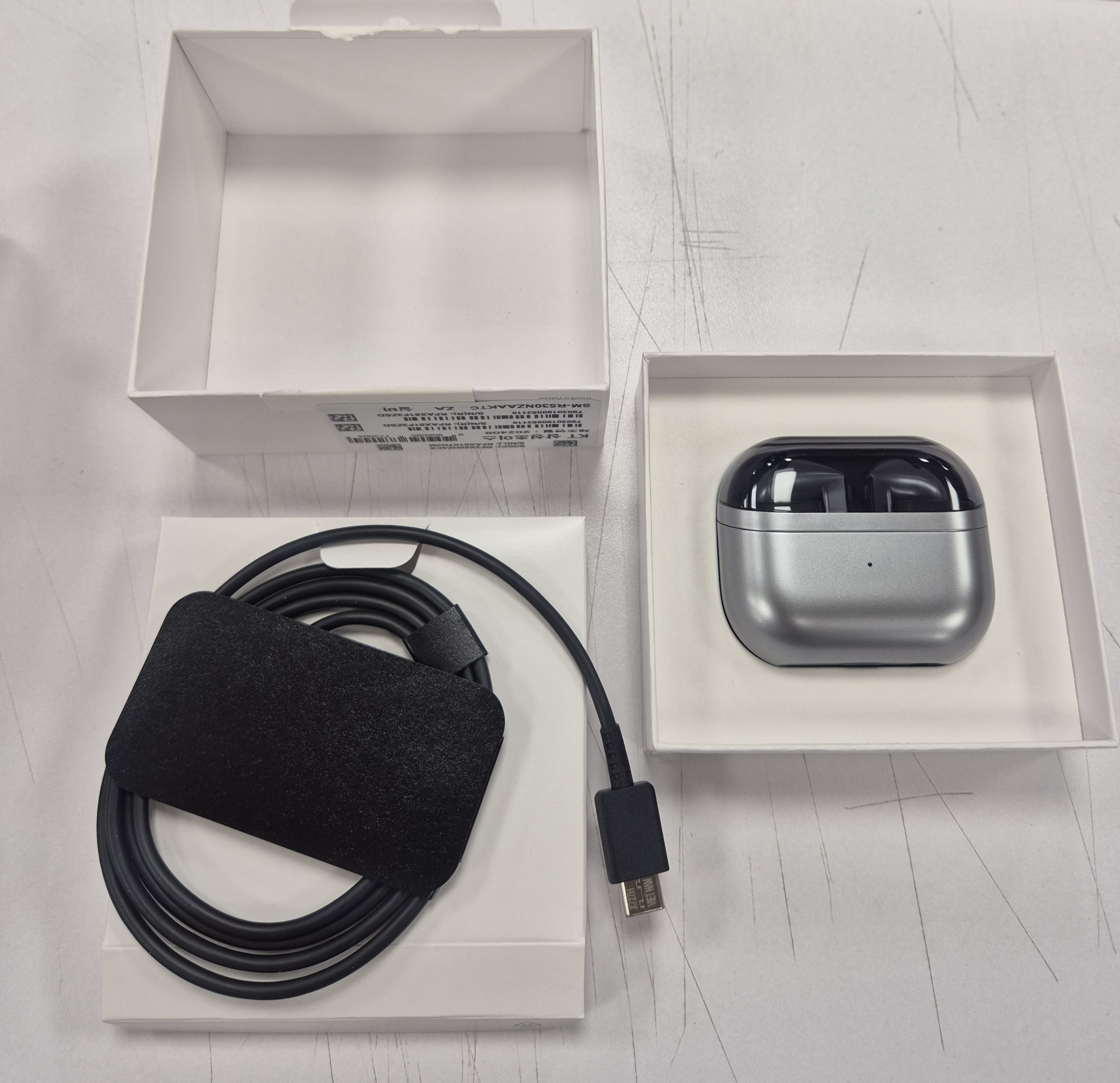 패키지를 열어보면 아이버드가 수납되어있는 케이스가 보이고~~~ USB C to C 충전 케이블이 들어 있는데 이번에 실버색상이 너무 세련되게(?) 나온 느낌입니다.