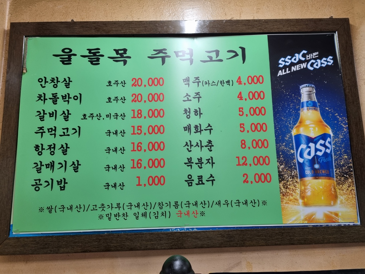 구의동 울돌목 주먹고기의 입구와 메뉴는*👇👇