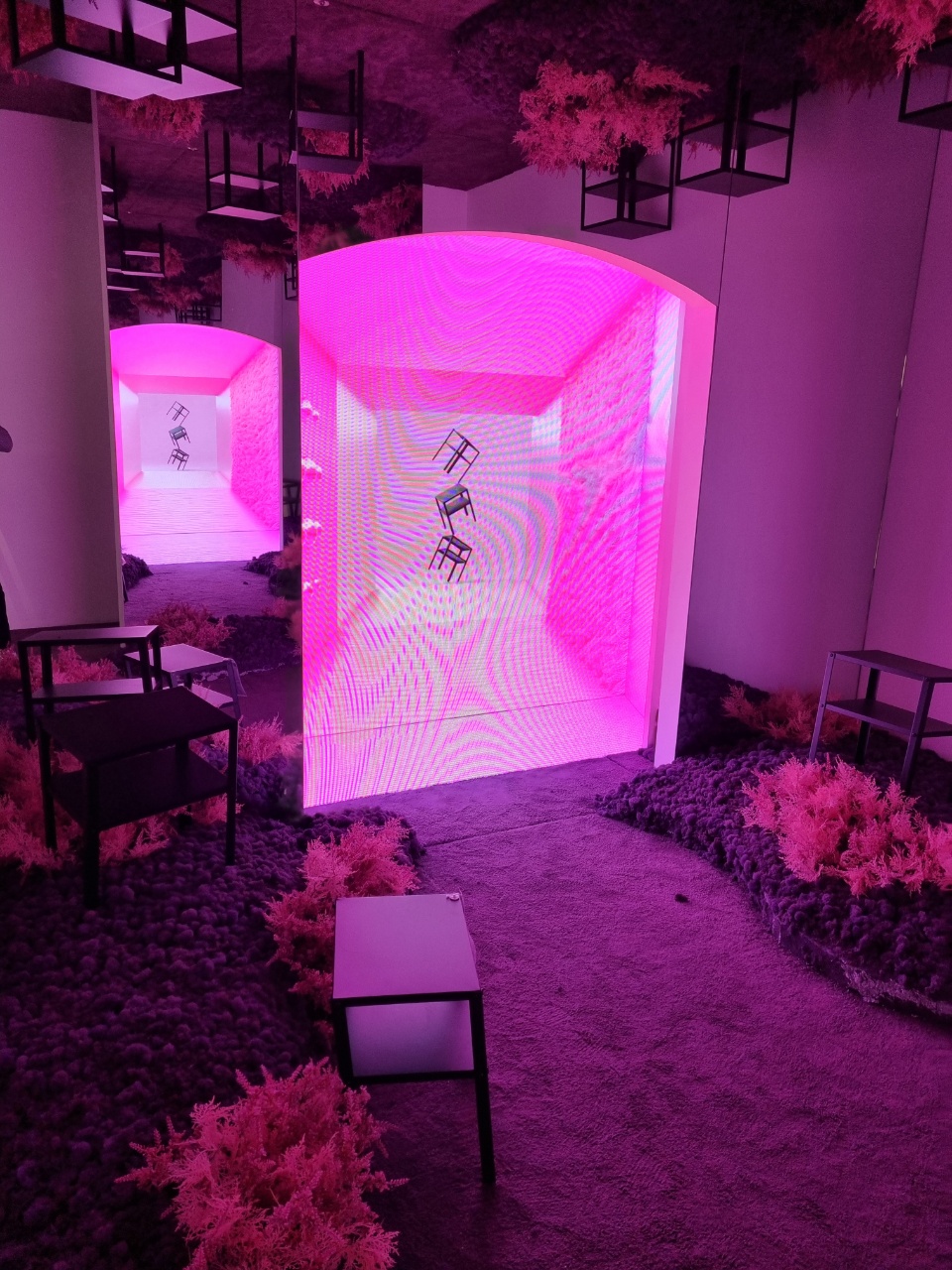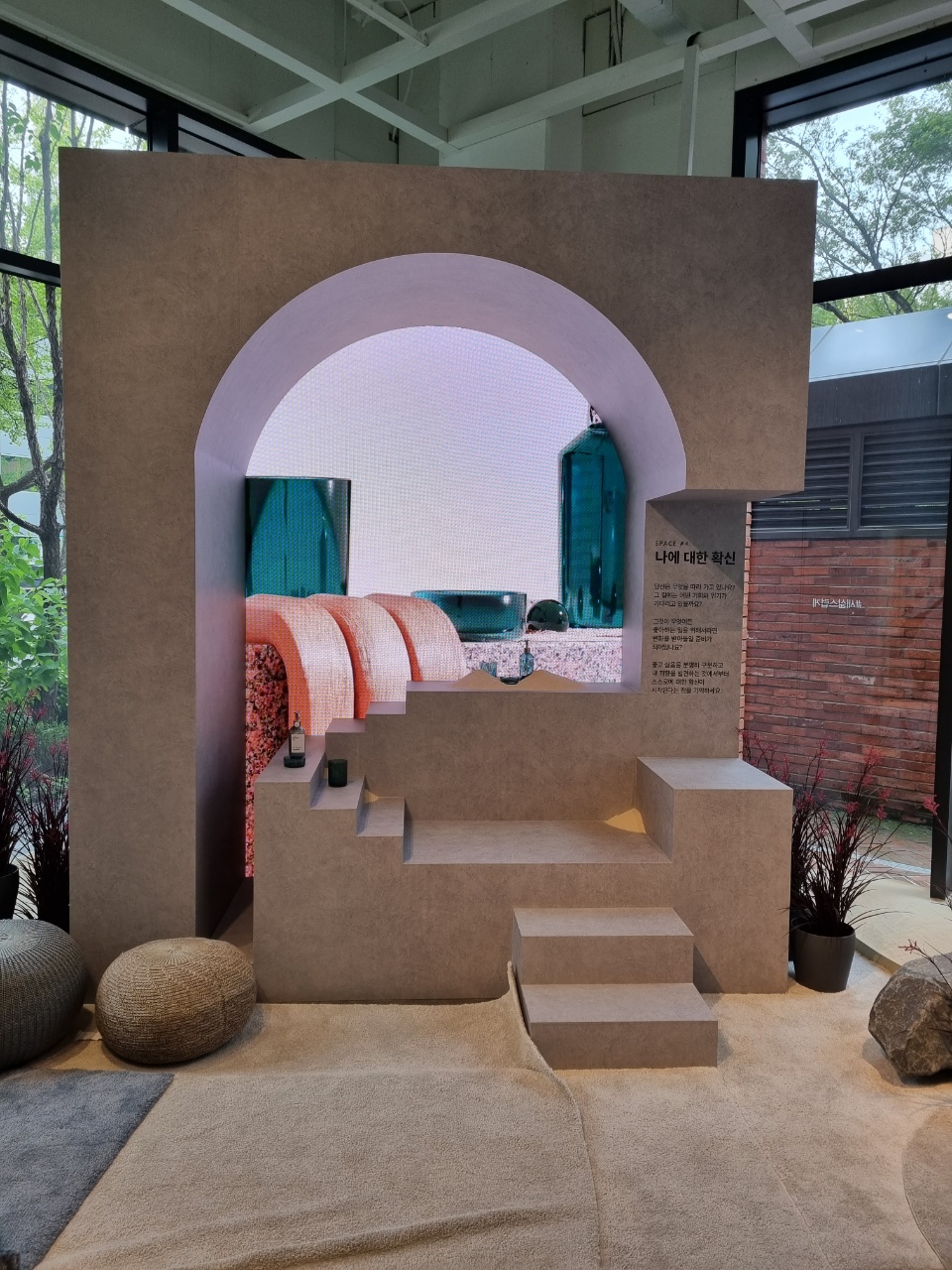 1층 팝업공간은 몽환의숲 같은 느낌의 깔끔한 가구들을 공간에 배치해둔걸 봤어요.