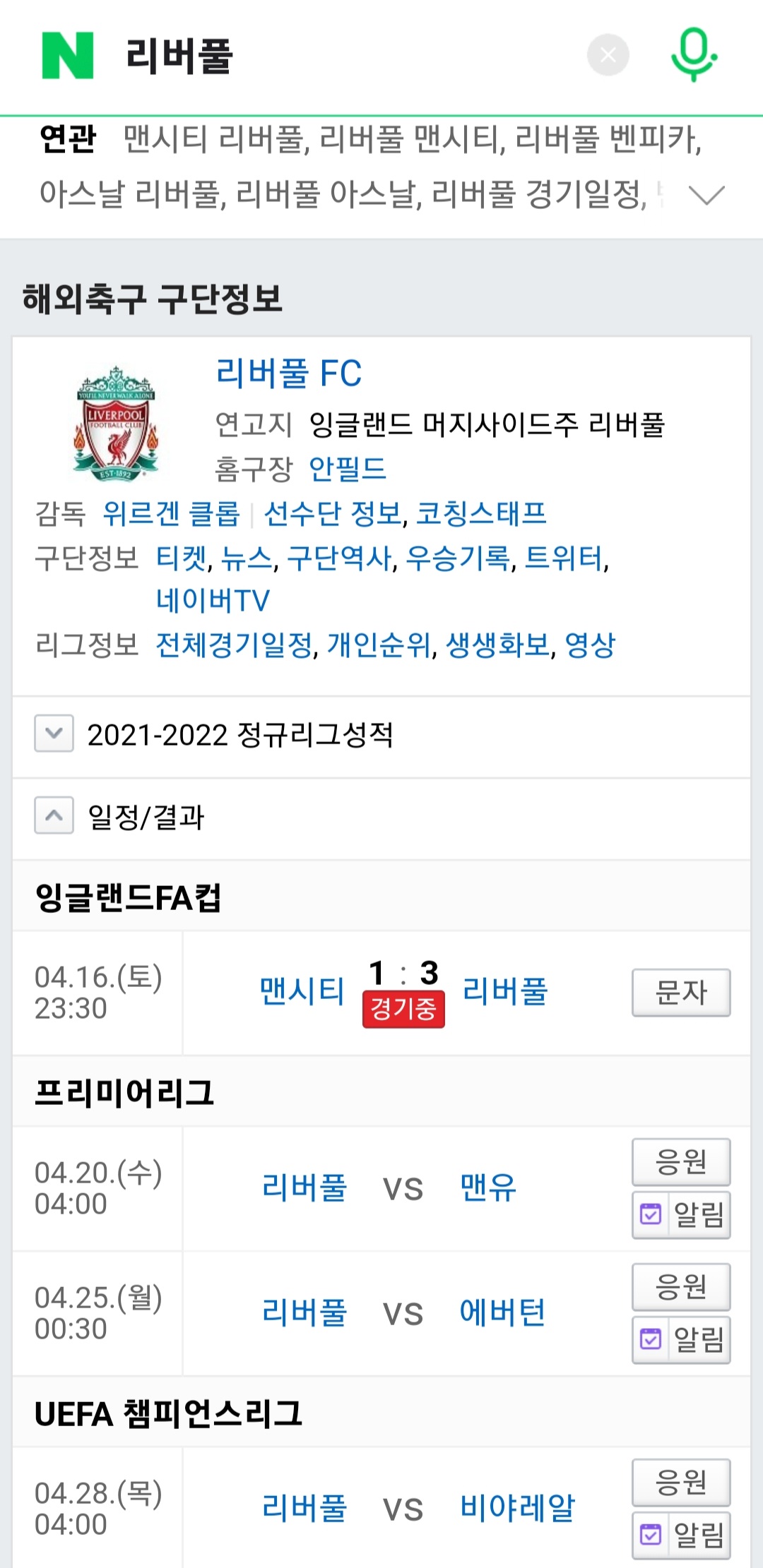 | [리버풀 콥등이] 리버풀vs첼시 2월15일(일) 0시45분, 21-22FA컵 결승(feat. 2관왕 도전) (11) | 2022.05.14 |