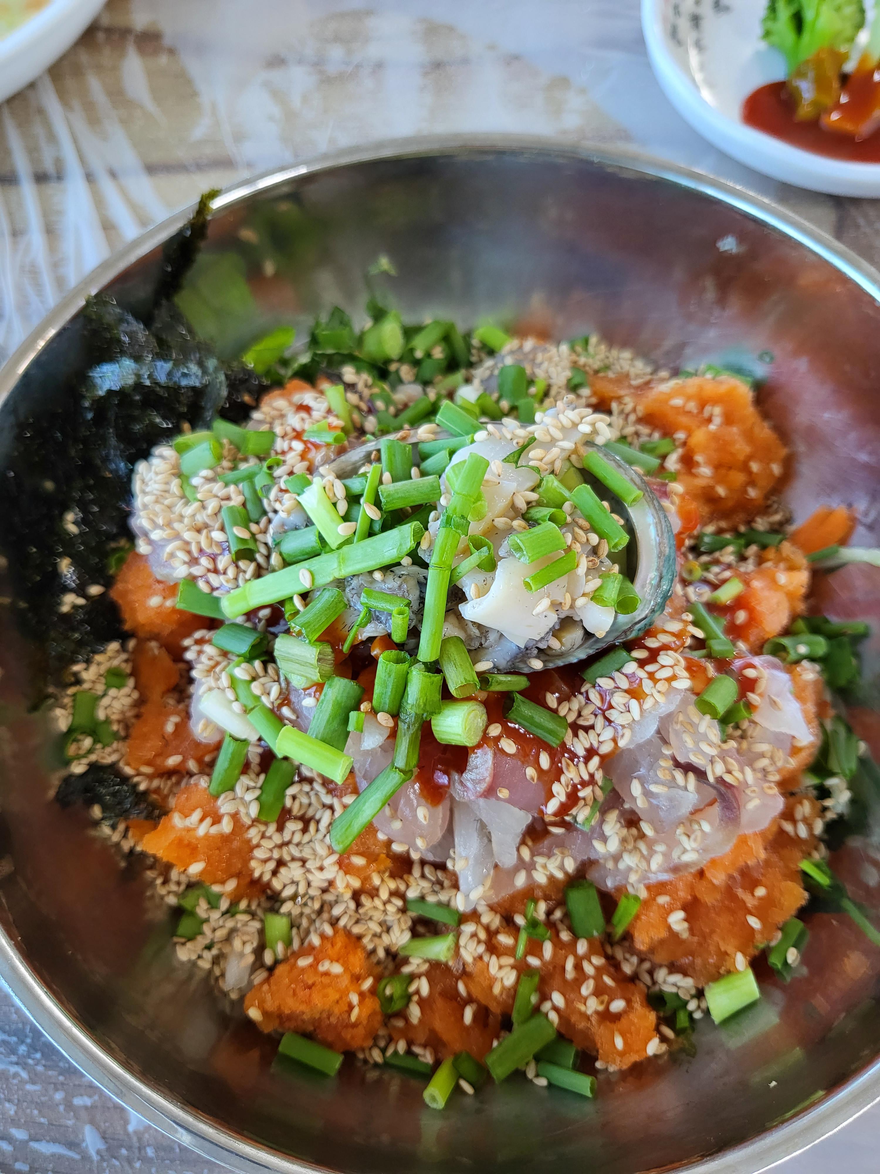 아마 좋아하는 회덮밥을 먹어서 더그럴수도 있고?