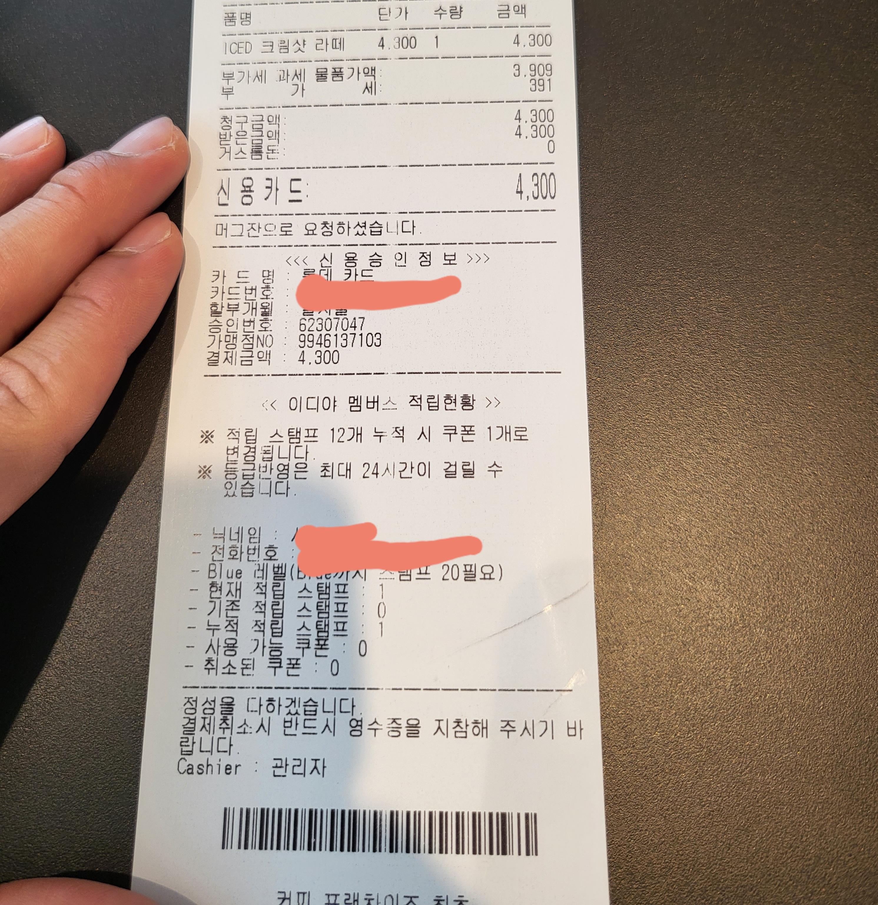 크림샷라떼 영접했어요.