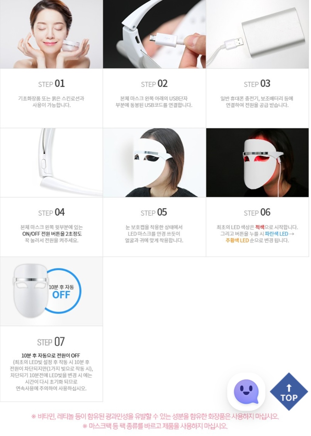 오랜지led - 약613nm / 기미 붉은빛 전반적 안색개선