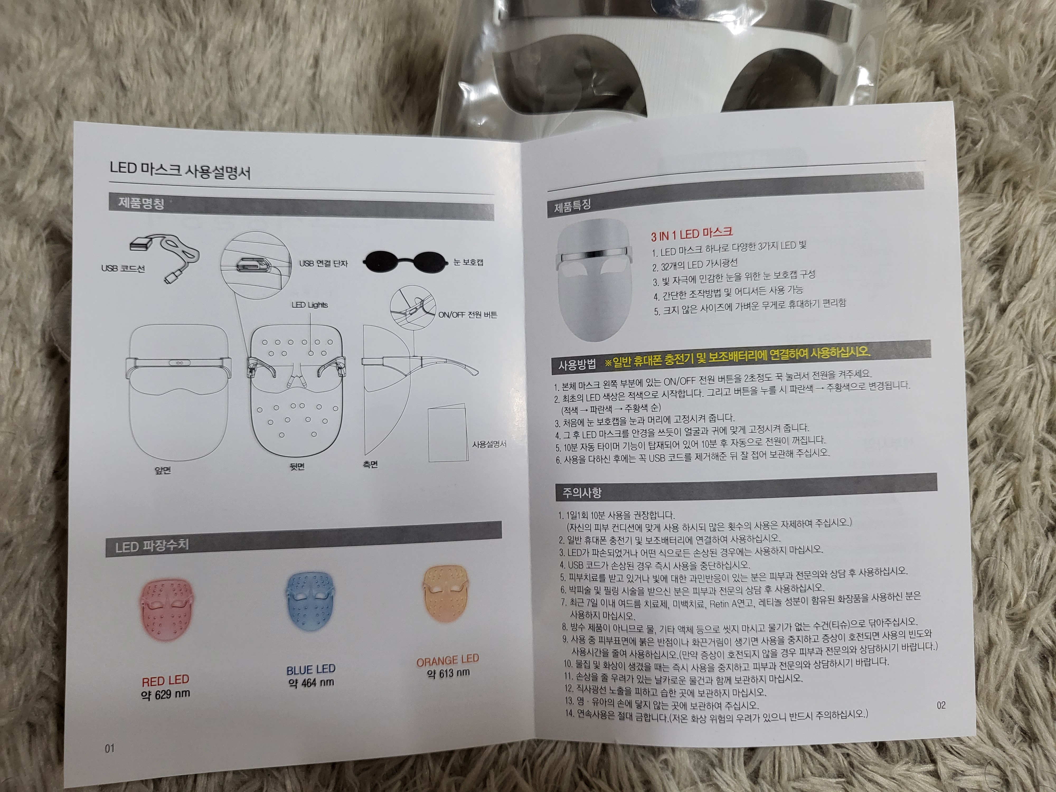 마스크본체+usb코드선+눈보호캡 세가지가 들어있습니다.