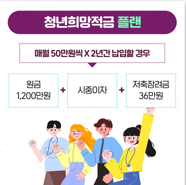(50만원씩 2년 납입시 1년차 12만원/ 2년차 24만원, 최대36만원의 저축장려금 지원)