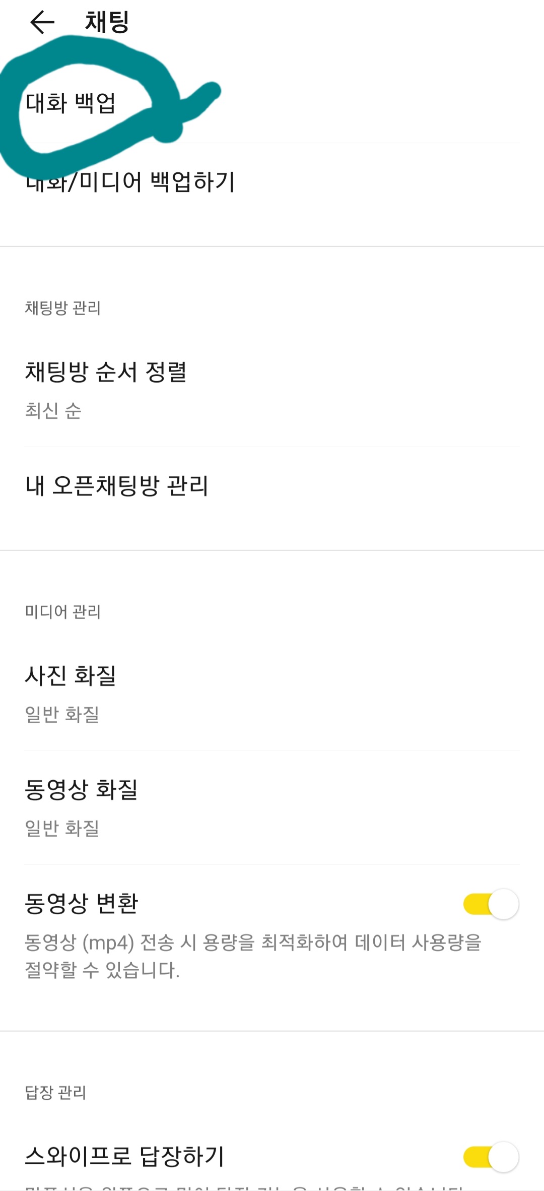 *대화백업은 그대로 대화의 텍스트만 백업하는 것