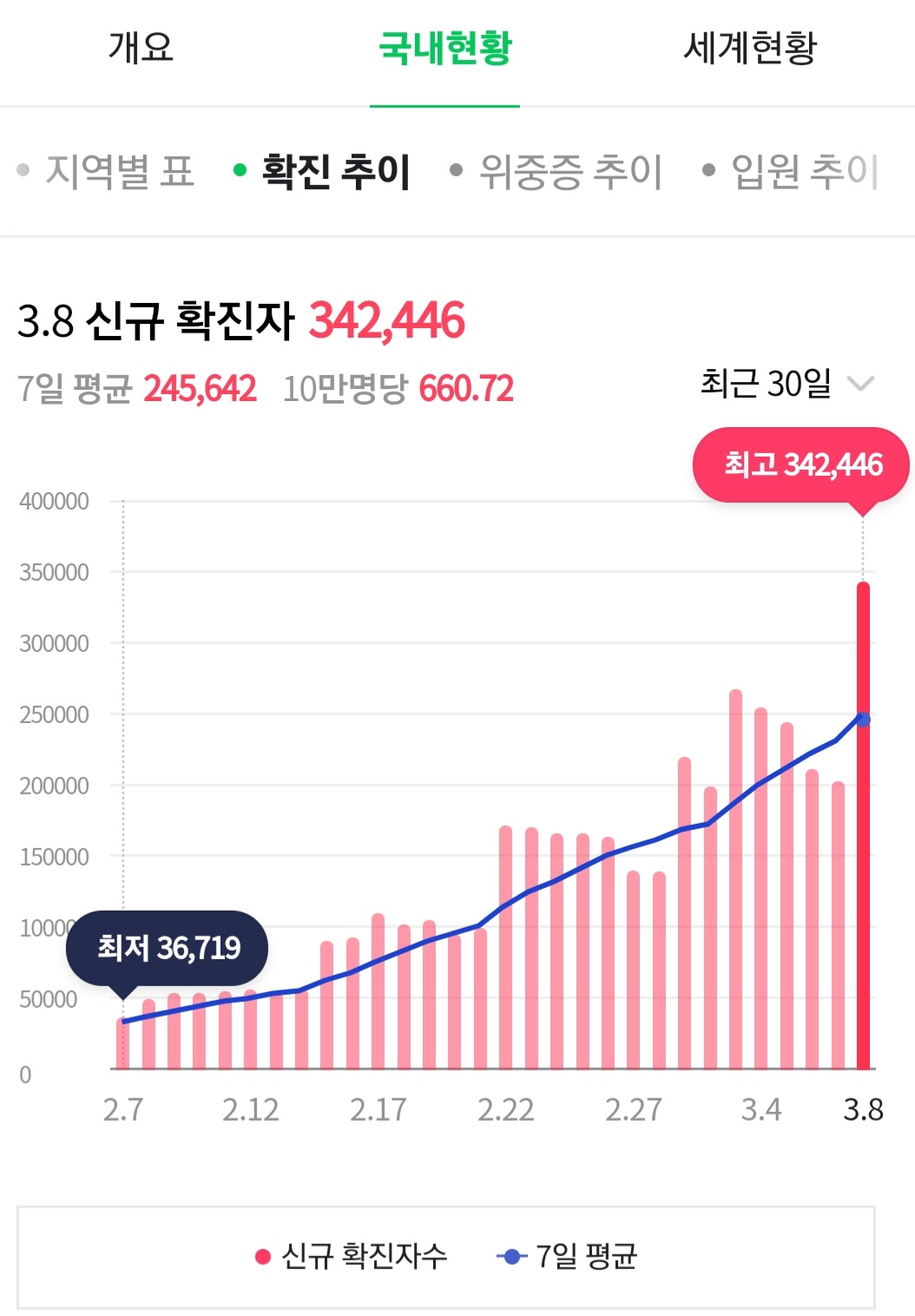 20만명이였는데 하루사이 약13만명이 급증했다고 합니다. 방역패스도 해지되고, 사회적 거리두기가 일부 완화되어(~11pm close) 지속적으로 늘어날 것으로 전망한다고하니, 외출시 각별히 신경쓰시면 그래도 좋지않을까 생각해봅니다.