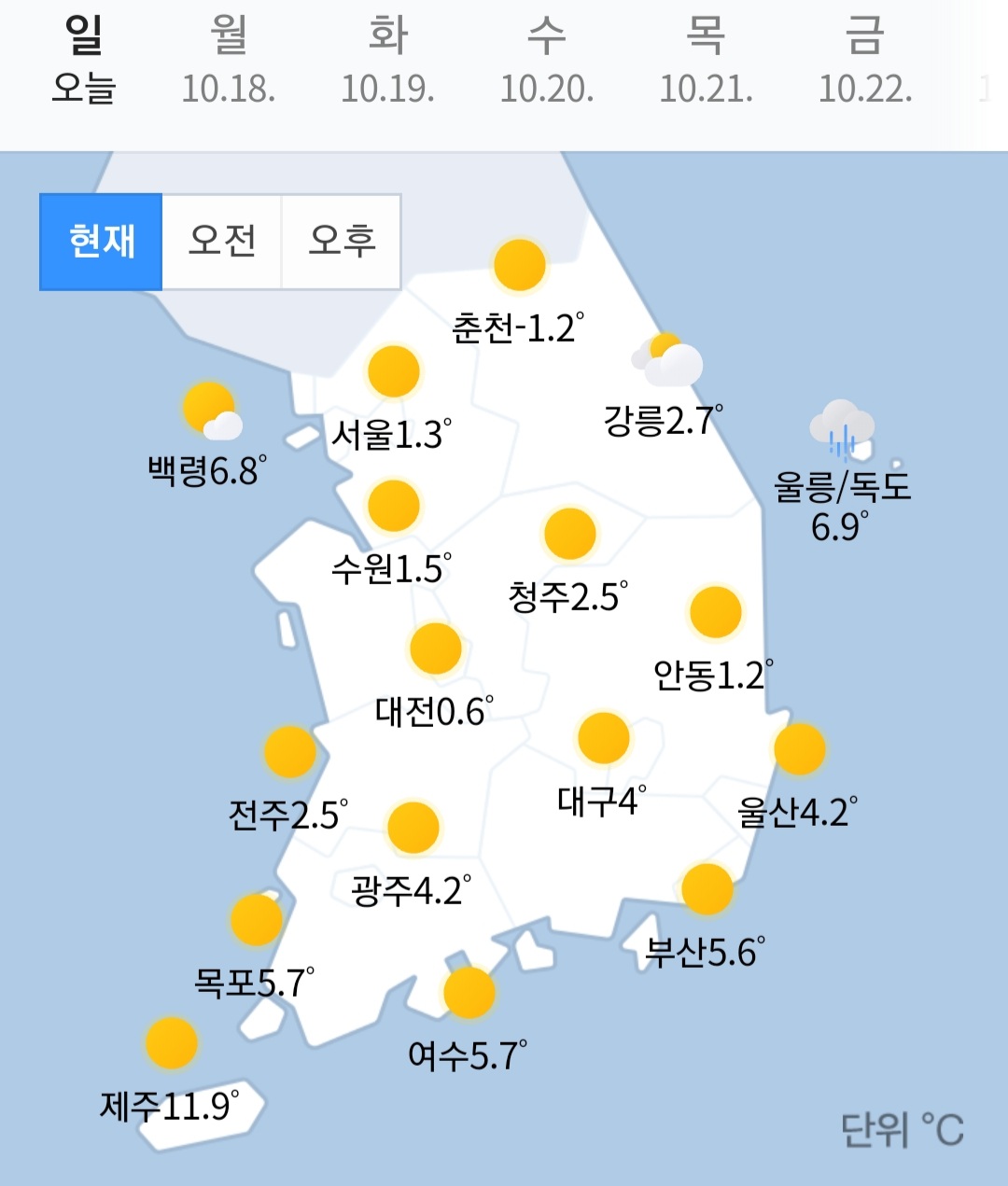 서울은 벌써 영하로 갈조짐이..
