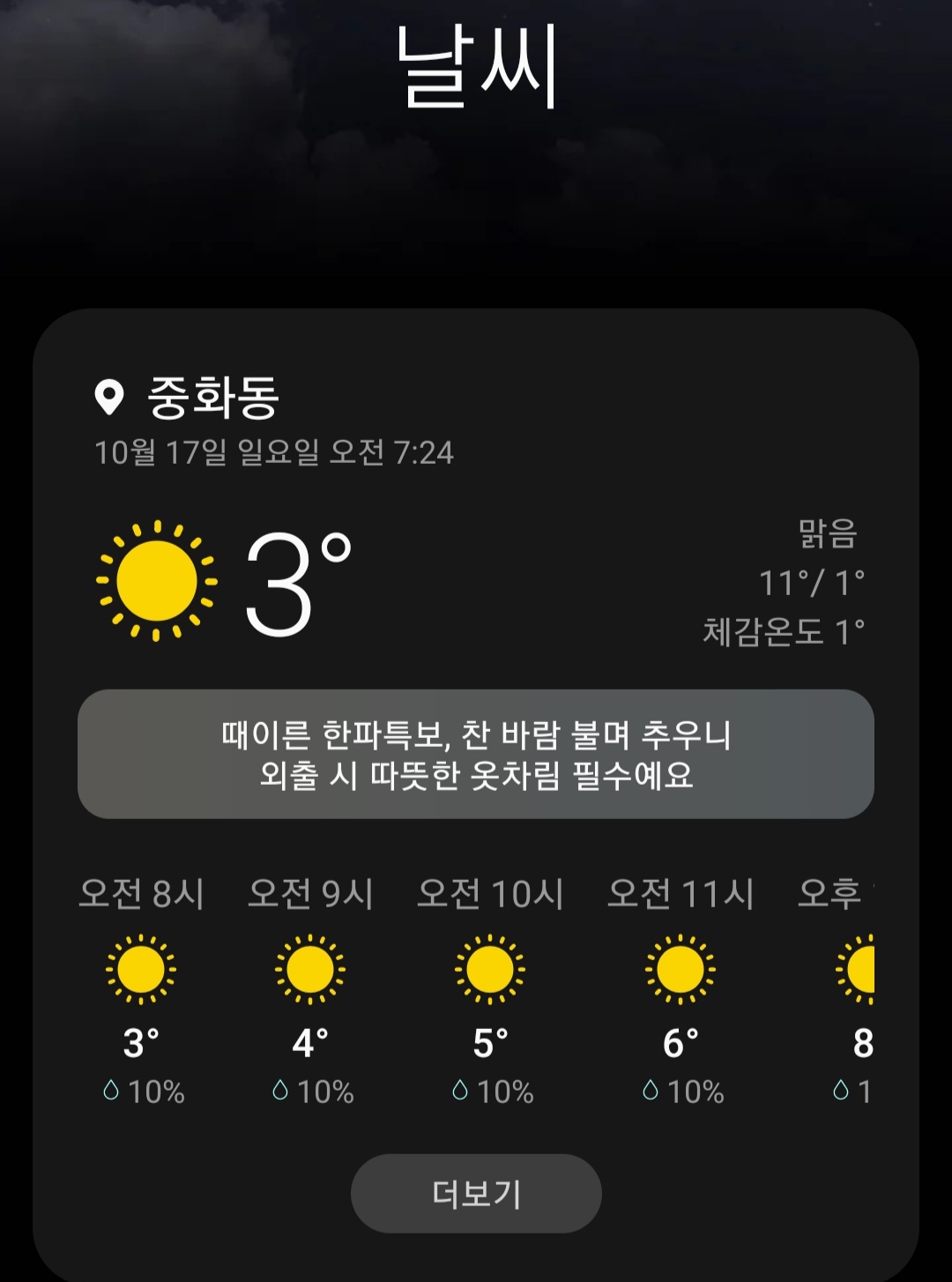 칼바람이 불어 체감온도는 예상보다 2~6도 더 낮아질거로 보인다고 하니 오늘 외출 하시는분들은 참고하시면 좋을 것 같아요😅😅..