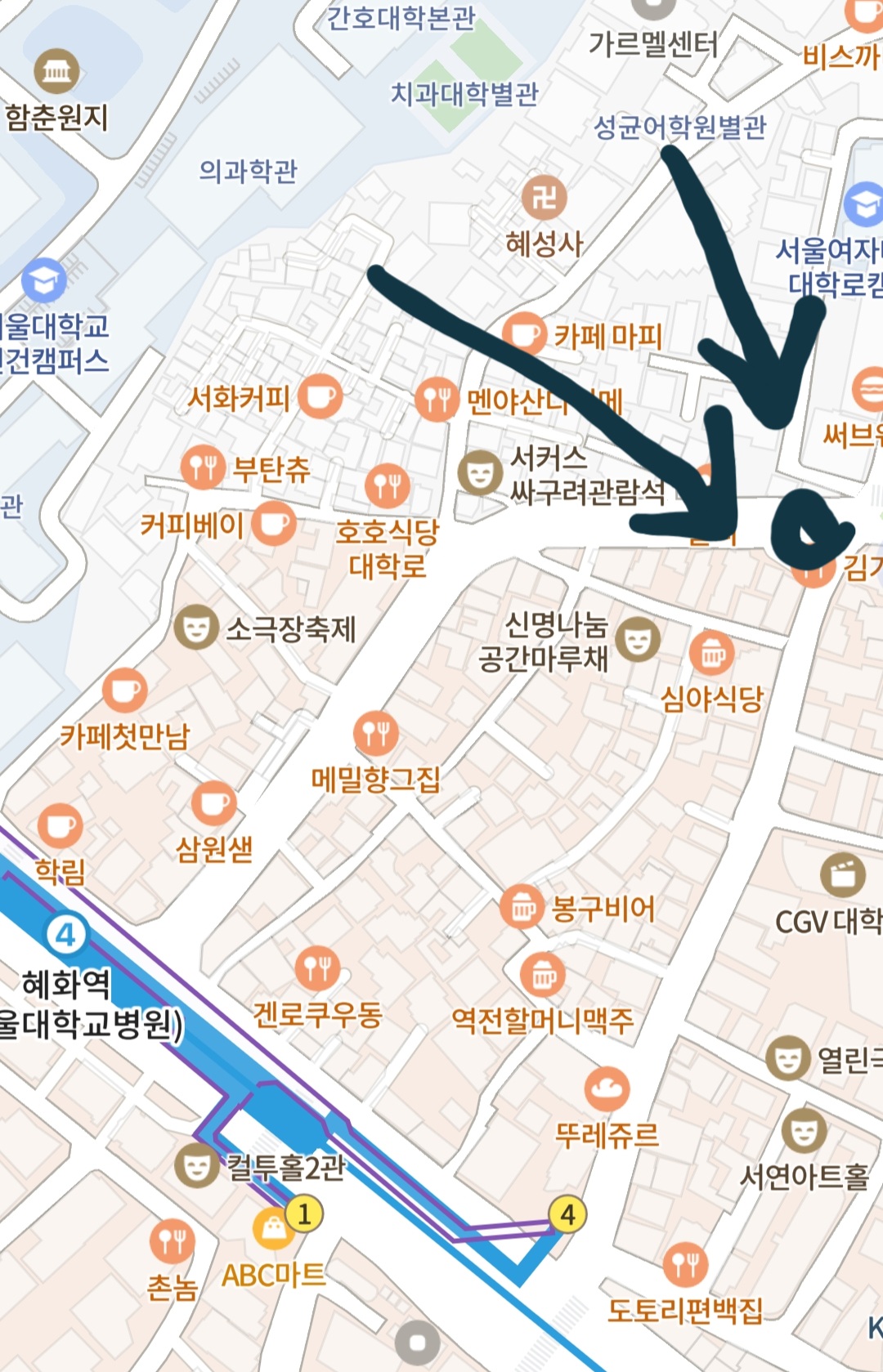위치는 혜화역 4번출구 쪽에서 직진하시면,