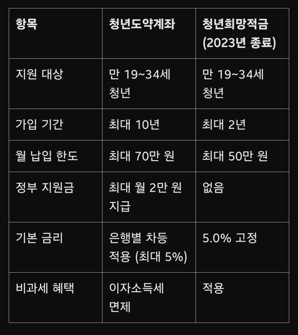 📌 청년도약계좌 vs 기존 청년 적금 비교