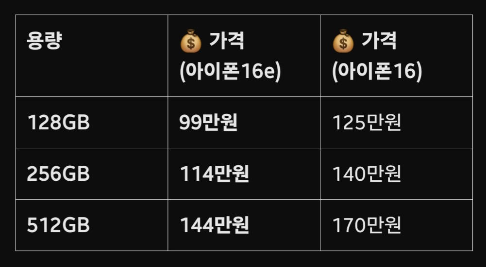 💰 3️⃣ 아이폰16e 가격 정보