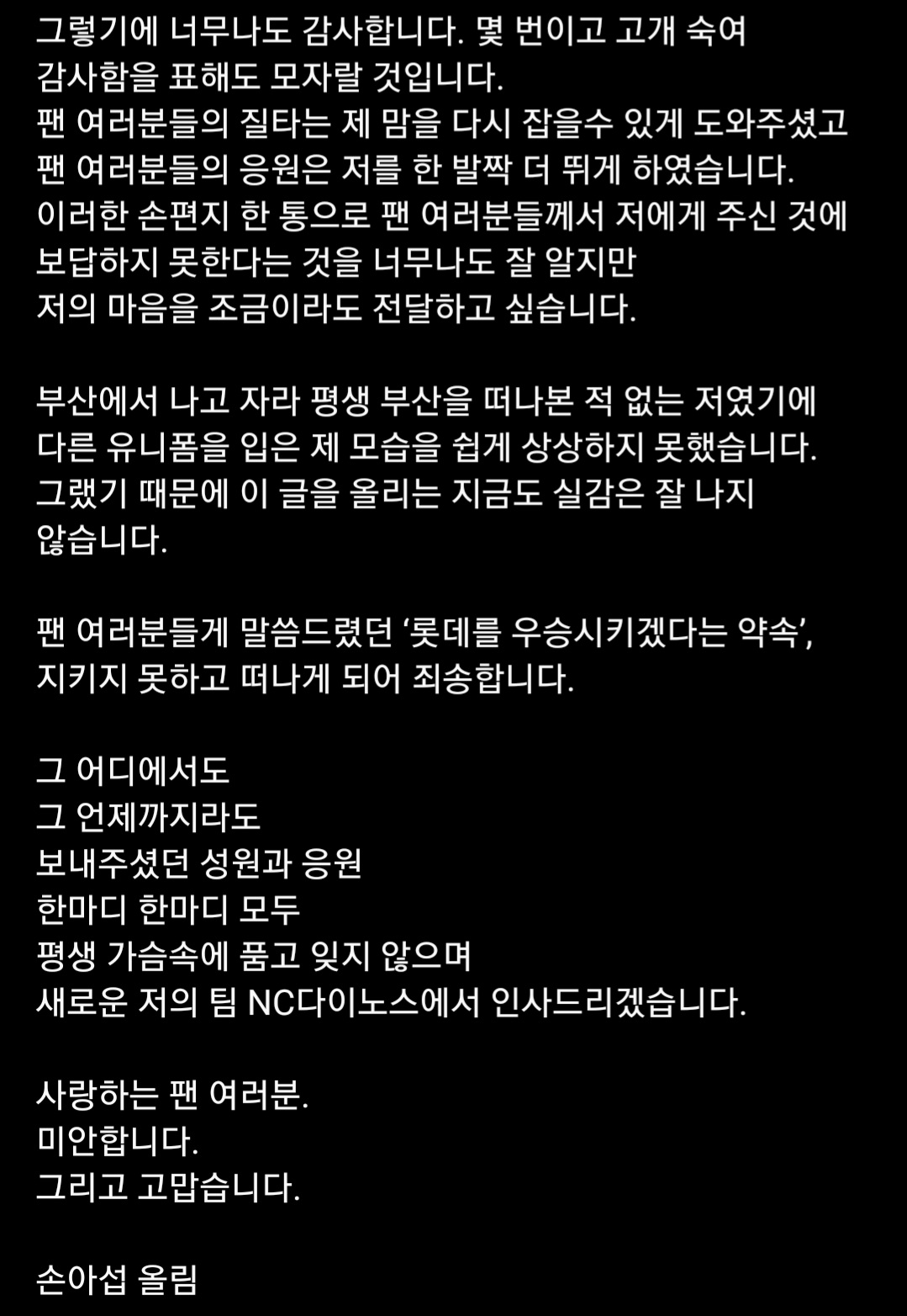 ◼ 손아섭 선수 NC이적 후 SNS