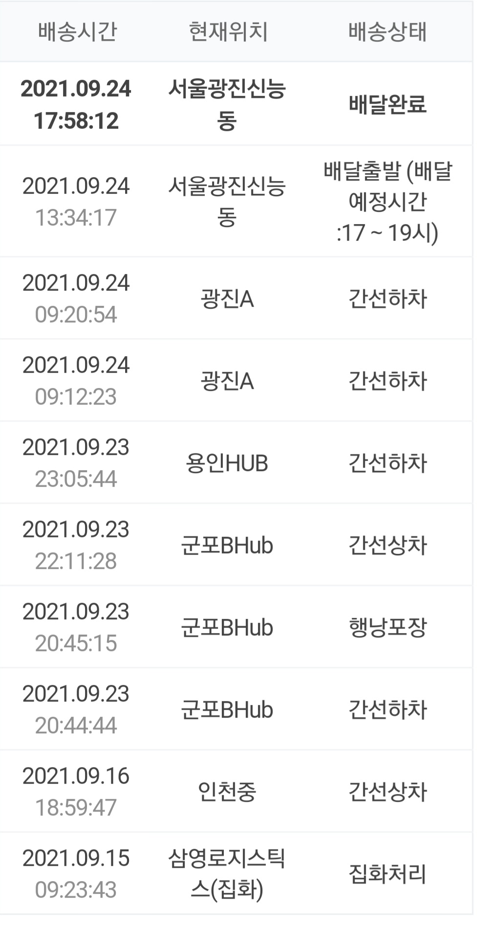 배송을 받게 된 건 추석 대명절이 지난 9월25일